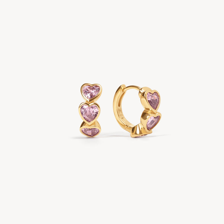 The Adore Bezel Hoops add a playful twist to your everyday style. At 15mm, these hoops feature three bezel-set heart crystals in light pink or clear cubic zirconia, offering a delicate sparkle with a modern edge. Designed with a reversible style—showcase the heart bezels or a sleek metal finish—these hoops are lightweight and easy to wear. Crafted in .925 sterling silver or 14k gold-plated sterling silver, they pair perfectly with any look, day or night.