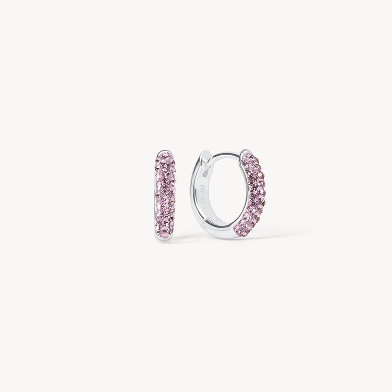 Two looks, one hoop. The Lilac Always On Sparkle Hoop Earrings bring playful versatility to your ear stack with a reversible design that flips between pastel purple sparkle and polished sterling silver. Inspired by blooming spring florals, the lilac-hued crystals are hand-set in a clay base and paired with a lightweight, slim silhouette that’s perfect for all-day wear. Whether you're keeping it minimal or making a statement, these 14mm hoops are designed to shift with your style.