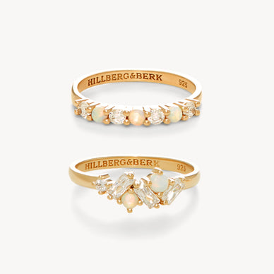 Stack your style with brilliance. The Opal Ring Set includes the Baguette Opal Cluster Stacking Ring and the Lineup Opal Stacking Ring—two refined-yet-playful designs made to mix, match, and shine. Crafted in your choice of .925 sterling silver or 14k gold vermeil, both rings feature a luminous combination of lab-created opals and white cubic zirconia. Whether worn together or on separate fingers, this duo delivers dimension, colour, and polish to every stack. Available in sizes 5–12 for a perfect fit.