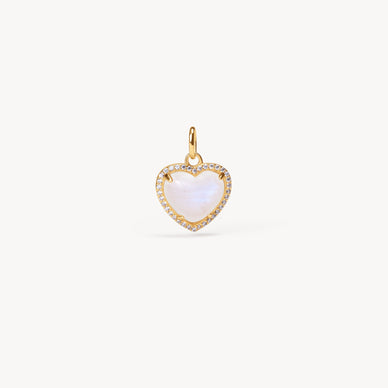 Over the moonstone. Compatible with all our chains and charm holders, this vibrant heart charm features an iridescent rainbow moonstone and gold accents. A perpetual source of excitement.