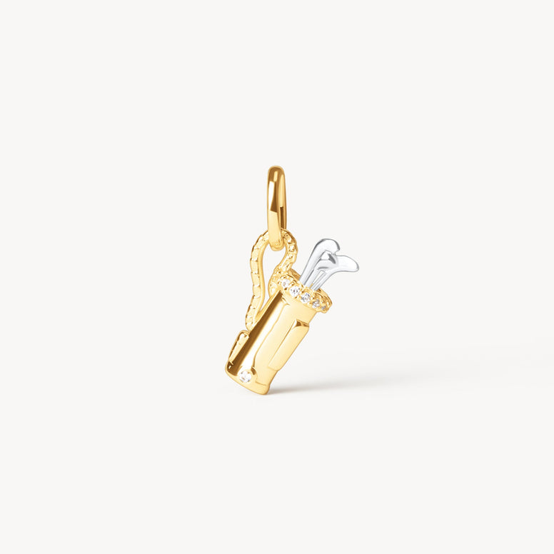 For those who love the game, on and off the green. The Tee Time Charm features finely detailed two-tone golf clubs nestled inside a gold vermeil golf bag, bringing a touch of sport-inspired shine to your jewelry lineup. At 12mm x 4mm, this charm swings freely from its bail, adding movement to any necklace or bracelet. A white cubic zirconia accent adds the perfect hint of sparkle—just like sunlight on the fairway. Designed for personalization, it’s compatible with all H&B charm bases and chains, making it easy to style your way.